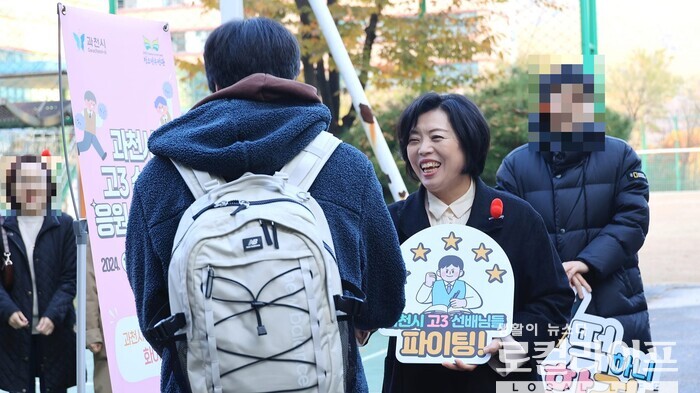 이어 “과천시 수험생 여러분! 많이 떨리시죠? 그동안 최선을 다해 노력해 온만큼 좋은 결과 있을 것이다! 해왔던 그대로 조금은 담담히, 차근차근 풀어나가시기를 바란다! 언제나 여러분의 밝은 미래를 응원하겠다! 수험생 여러분 파이팅!!!!”이라고 응원했다.