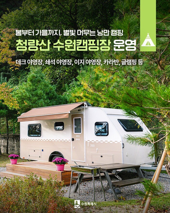 아울러 이 시장은 작년 가을 미처 방문하지 못하셨다면, ‘4월 1일 개장하는 청량산 수원캠핑장에서 흐드러진 봄꽃과 함께 잠시 쉬어가시면 어떨까요’라며, 지금 ‘캠핑톡’ 앱과 홈페이지에서 3월 15일(일) 오전 10시까지 추첨제 예약 신청을 받고 있다며, 수원시민께 50% 할인 혜택도 있으니 꼭 한번 이용해 보시면 좋겠다고 덧붙였다.