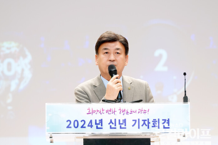 ▲ 방세환 경기도 광주시장이 ‘2024년 신년 기자회견’을 갖고 있다. (사진제공=경기도 광주시) |