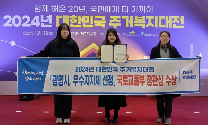 주최 측은 “광명시는 주거복지센터를 운영해 주거 취약계층을 발굴, 지원하고, 주거복지 자원 발굴과 민관 협력 네트워크 구축, 주거복지 정책 지원 및 광명시만의 특화사업을 추진해 주거복지 사각지대 해소와 시민 주거권 향상에 크게 기여했다”고 시상 배경을 설명했다.