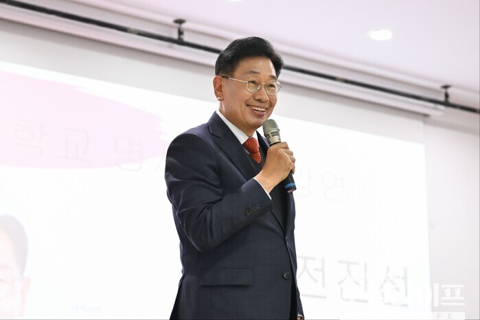 [양평=로컬라이프] 송준형 기자 = 전진선 양평군수는 18일, 양서고등학교에서 명사특강을 진행했다.