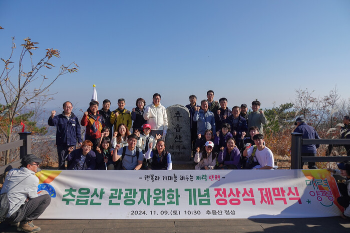 [양평=로컬라이프] 송준형 기자 = 전진선 양평군수는 9일 오전, 개군면 추읍산 정상에서 2024년 추읍산 정상석 제막식을 진행했다.