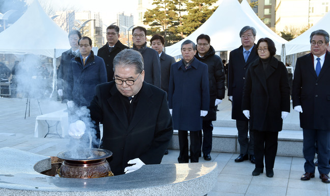 이재정 경기도교육감이 2019년 새해를 맞아 2일 수원 현충탑에서 경기도교육청 각 실국장 10여 명과 함께 순국선열과 호국영령의 넋을 기리기 위해 헌화・분향한 뒤, “순국선열과 호국영령의 뜻을 받들어 3・1독립운동 100주년 정신을 경기교육에서 반드시 구현하겠습니다.”라는 글을 방명록에 남겼다.