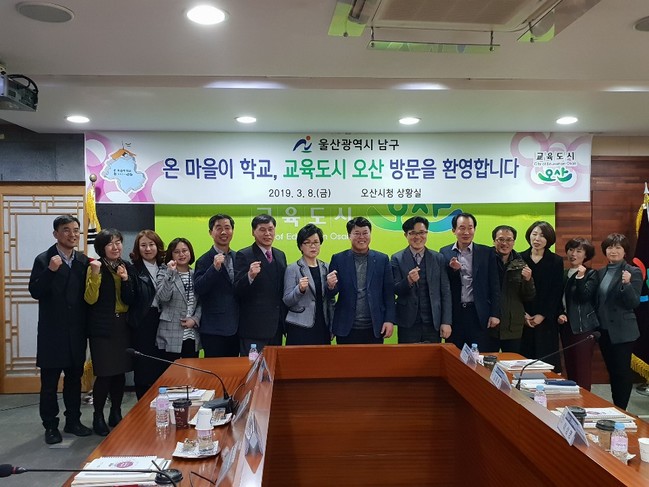 오산시(시장 곽상욱)는 지난 8일 울산 남구청장을 비롯한 관계자 18명이 오산시를 방문하여 혁신교육과 평생교육의 성과를 공유하는 자리를 가졌다고 밝혔다.