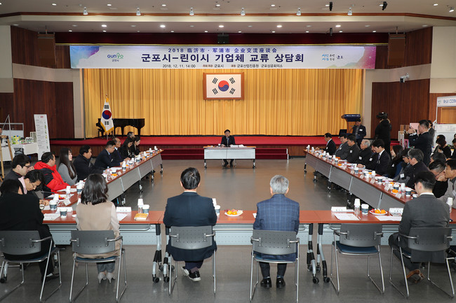 군포시(시장 한대희)는 자매결연 도시인 중국 린이시의 경제 분야 공무원들과 산동란화그룹 등의 기업인들이 11일 경제 교류 활성화를 위해 시청을 방문, 군포지역 24개 기업체 관계자들과 상담회를 통해 의견을 교환했다고 밝혔다.