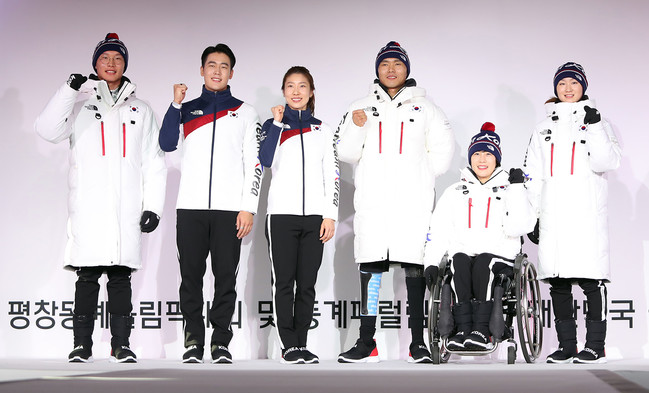 영원아웃도어(대표 성기학)의 글로벌 아웃도어·스포츠 브랜드 노스페이스는 31일 오후 대한체육회(회장 이기흥) 주최로 태릉선수촌에서 개최된 ‘2018 평창동계올림픽 G-100 미디어데이’에서 2018 평창 동계올림픽대회와 동계패럴림픽대회에 출전하는 대한민국 국가대표 선수단인 ‘팀코리아’가 착용할 단복 시연회를 진행했다.