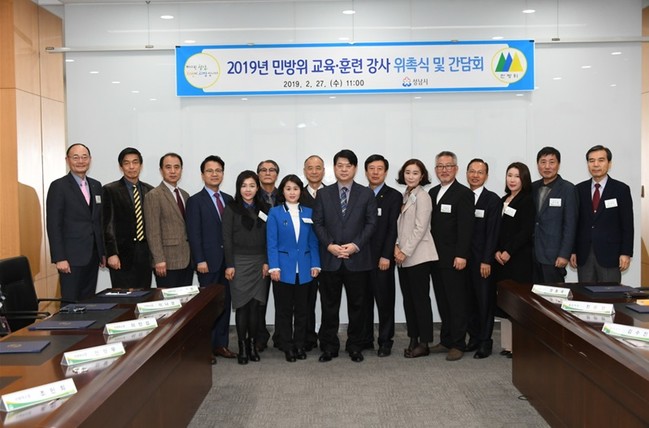 성남시에서는 2019년 민방위대원 교육 및 시민 생활안전체험 교육을 위하여 1차 서류심사, 2차 면접심사를 통해 최종 18명의 강사를 선발하여 지난 2월 27일 11시 성남시청 탄천관에서 위촉식을 가졌다.
