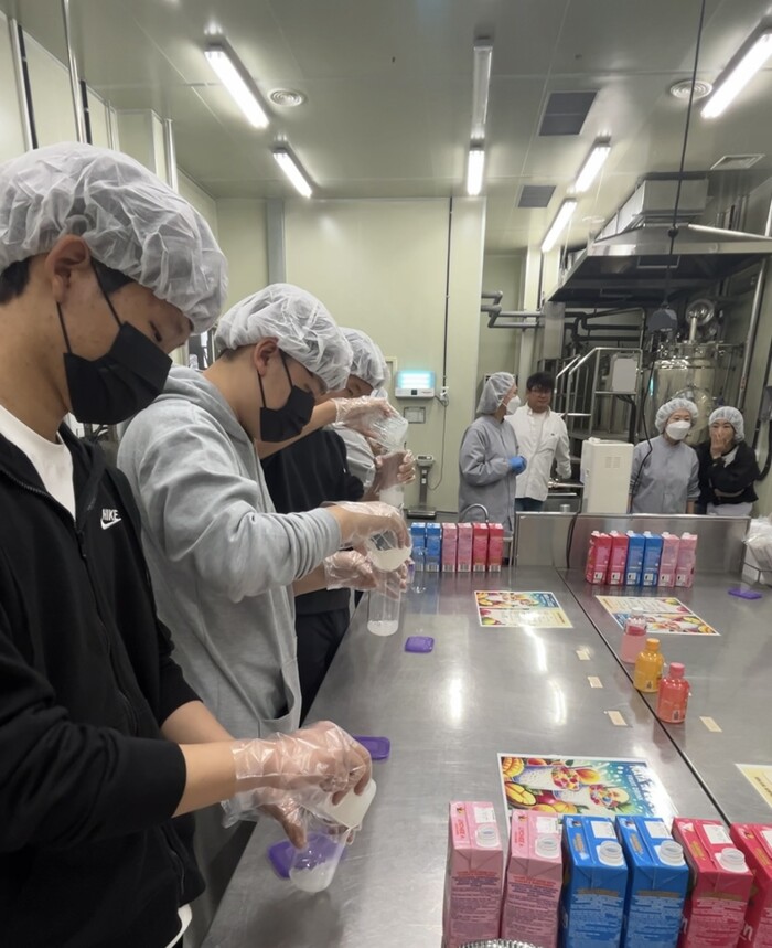이어 농산물가공지원센터에선 식품가공기술, 식품위생, 식품과학 등의 전공과 연계할 수 있도록 코코넛 열매를 가공한 ‘나타드코코’를 재료로 과일음료를 만드는 실습도 했다.
