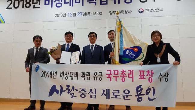 용인시는 27일 정부세종청사에서 행정안전부 주관으로 열린 2018년 비상대비 태세 확립 유공 정부포상 수여식에서 국무총리 기관표창을 수상했다.
