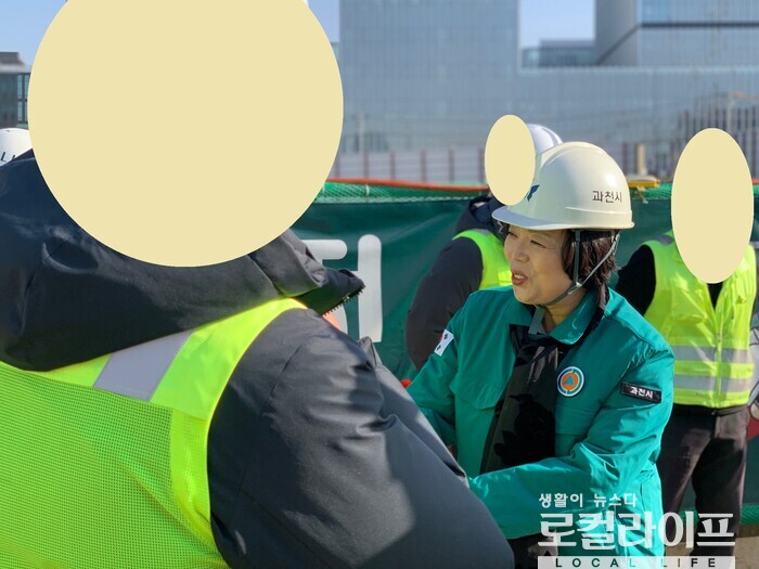 ▲ 신계용 과천시장이 ‘과천정보타운역 신설 사업’ 현장을 찾아 공사 관계자들을 격려하고 있다. (사진출처=신계용 페이스북) |