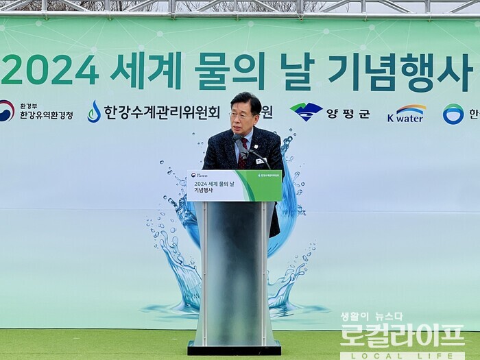 ▲ 전진선 양평군수가 ‘2024 세계 물의 날 기념행사’에 참석해 축사를 하고 있다. (사진출처=전진선 페이스북) |