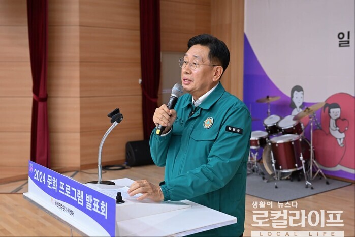 ▲ 전진선 양평군수가 ‘2024 문화 프로그램 발표회’에 참석해 축하를 하고 있다. (사진출처=전진선 페이스북) |