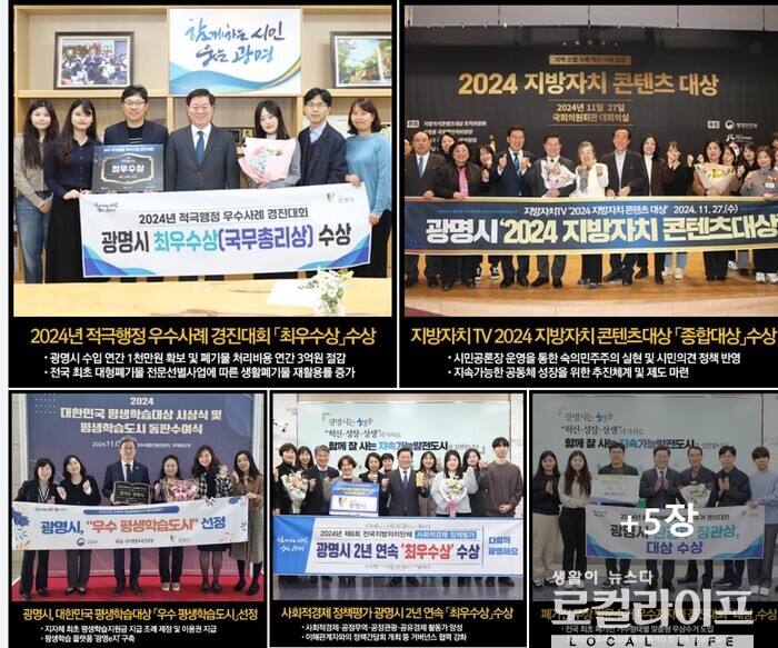 29일, 박승원 시장은 자신의 페이스북을 통해 “2024년 11월, 광명시가 여러 수상 소식을 접했다”며 “시민을 위해 열심히 뛰어준 공직자 여러분께 감사한 마음을 전한다”고 말했다.