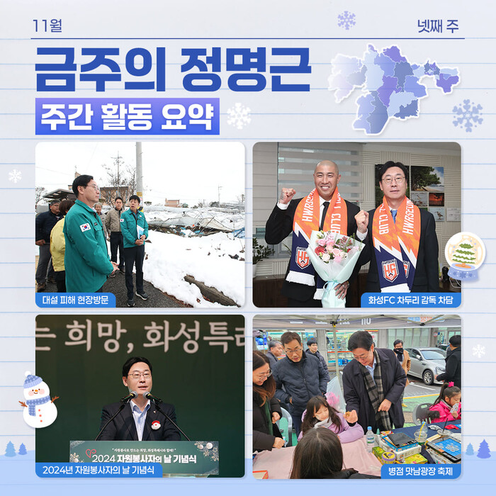 [화성=로컬라이프] 송준형 기자 = 정명근 화성시장은 1일, 자신의 페이스북을 통해 갑작스러운 폭설로 인한 제설과 피해복구로 정신없이 바빴던 1주일이었다고 전했다.