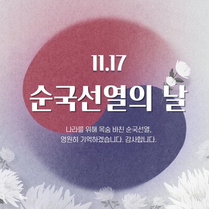 [이천=로컬라이프] 송준형 기자 = 11월 17일, 오늘은 대한민국의 국권회복과 조국독립을 위해 희생하고 헌신하신 애국자 및 독립운동가 등을 기리는 순국선열의 날이다.