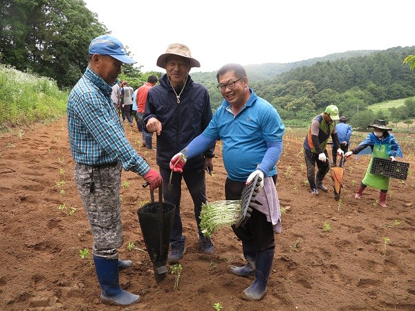 그동안 양평군농촌지도자회는 우리농업의 1차 생산시장이 한계에 봉착해 있는 상황을 인식하고 우리 농업의 새로운 활로를 위해 2차 농산물 가공 산업과 연계한 1차 농산품 생산의 중요성에 공감해 왔다. 이를 위해 양평군농촌지도자연합회는 지역 농산물 가공 산업과 연계가 가능한 작목으로 들깨를 선정하고, 33,000㎡의 공동사업포장을 준비해 이날 연찬교육에 참여한 100여명의 회원이 함께 들깨 정식작업을 진행했다.