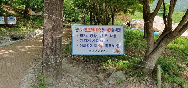 또한 등산로 현수막 게시 및 읍·면 보건지소, 보건진료소에 기피제, 토시 등을 배부해 적극 사용하도록 하고 있으며 빈집과 공터에 방역을 적극적으로 추진하고 있다.