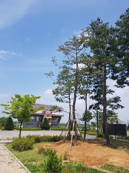 무더운 날씨 속에서도 건강하게 생육할 수 있도록 소나무가 좋아하는 환경인 양질의 마사토로 성토하고 각종 병해충에 대비해 살충제를 뿌려주는 등 우람한 장송 2주가 잘 자랄 수 있도록 매일 충분한 물 주기와 관리로 야생조류 생태공원 내 새로운 볼거리를 만들 계획이다.
