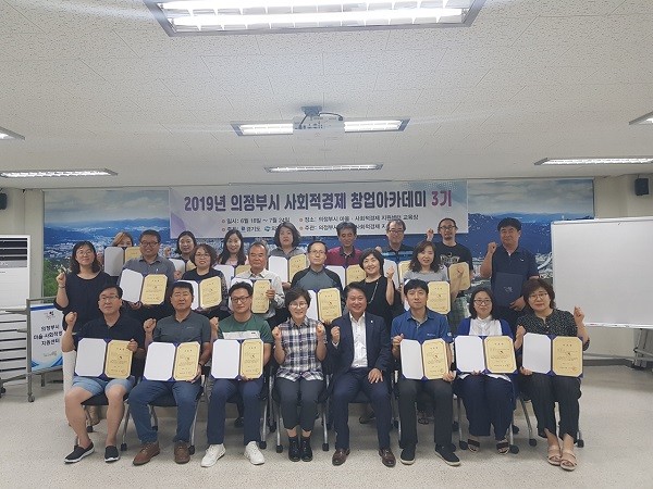 의정부시 마을·사회적경제지원센터는 지난 2일 ‘2019년 의정부시 사회적경제 창업아카데미 3기’ 기초과정 수료식을 개최했다.