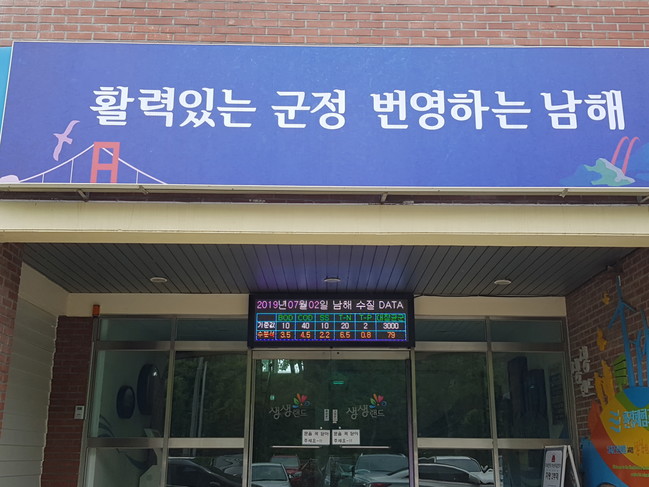 남해군 상하수도사업소 입구에 위치한 수질정보 전광판