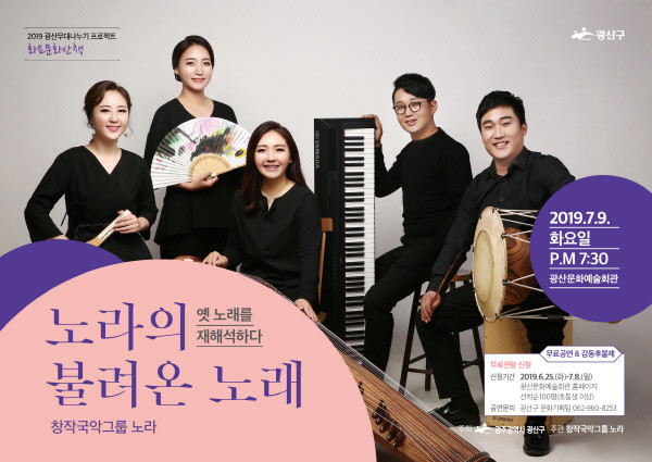 광산구가 9일 광산문예회관에서 창작국악그룹 ‘노라’의 ‘불려온 노래’ 공연을 개최한다.