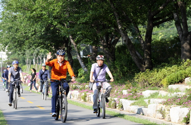 자전거를 타며 출·퇴근하는 시민들과 가볍게 인사를 나누며 의견을 청취한 이 시장은 포항도시숲과 형산강 일원에 ‘스마트 자전거’ 도입을 검토하도록 부서에 주문했다.