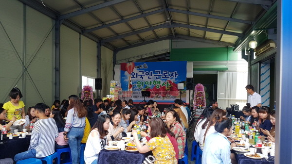 산청군 시천면 덕산딸기연합회가 지역에서 일하고 있는 외국인 근로자들을 위한 격려잔치를 열었다.