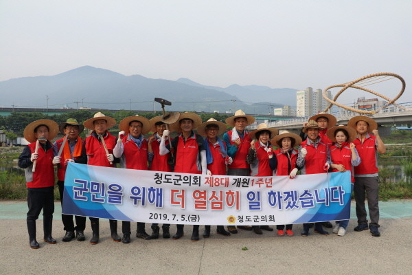 청도군의회는 5일, 제8대 1주년을 맞이해 청도의 젖줄인 청도천변에서 하천변 잡목제거 및 환경정화활동을 펼쳤다.