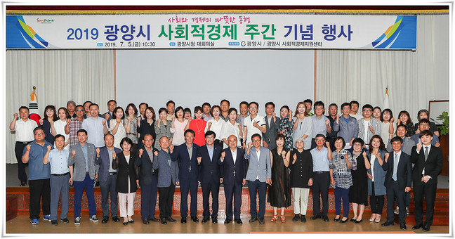 광양시는 지난 5일 사회적기업의 날과 협동조합의 날을 맞아 시청 대회의실에서 100여 명이 참석한 가운데 ‘2019 광양시 사회적 경제 주간 기념행사’를 개최했다고 밝혔다.