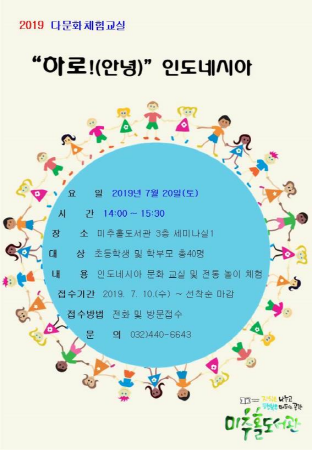 인천광역시 미추홀도서관은 오는 20일 오후 2시 세미나실1에서 다문화 체험교실 “하로 인도네시아”을 진행한다.
