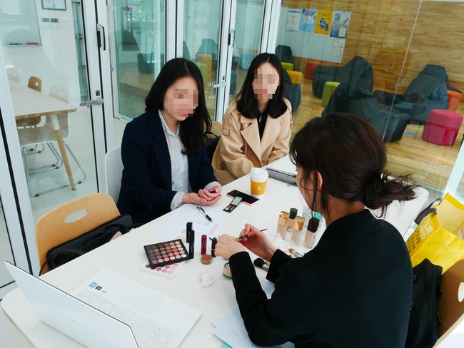 노량진 청년일자리센터에서 메이크업 강의를 듣고 있는 모습