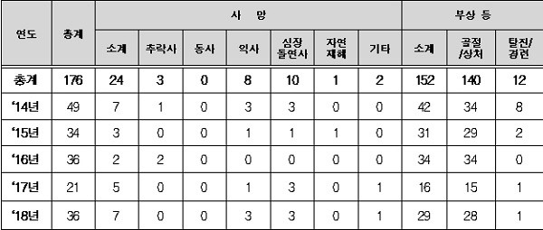 최근 5년간 휴가철(7~8월) 안전사고 현황 (단위 : 명)