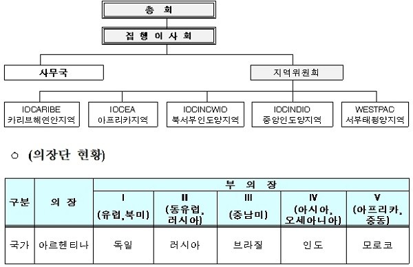 우리나라는 1961년 정식 회원국으로 가입한 후, 1993년에 처음으로 집행이사국에 진출해 현재까지 27년간 집행이사국 지위를 유지해오고 있다. 2011년에는 의장을 배출하는 등 전 세계 해양과학 분야를 선도하는 국가로서 정부간해양학위원회에서 주도적인 역할을 수행하고 있다.