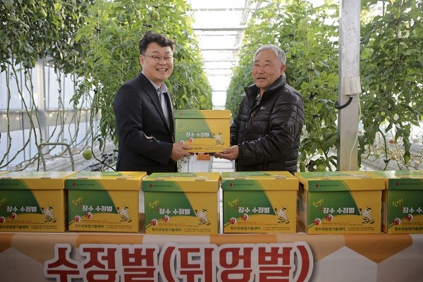 장수 토마토는 군의 대표 전략 품목 중 하나로 재배면적이 80ha, 재배농가는 214호이며 매년 재배면적과 생산량이 증가하고 있다. 토마토는 꿀벌로 수정하기 어려운 작물로 꽃가루 수정 능력이 탁월하며 환경에도 강한 장수 수정벌을 활용해 생산성을 높이고 있다.