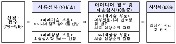미래기술 부문에는 일반국민 2~4인이 한 팀으로 참가해 해양수산 미래기술 아이디어를 제안하면 된다. 서류심사 결과 창의성, 실용성 측면에서 우수한 평가를 받은 6개 팀은 전문가들과 함께 기술 실용화방안 등을 모색하는 ‘아이디어 캠프’에 참여하게 되며, 이후 최종 심사를 통해 순위가 결정된다.