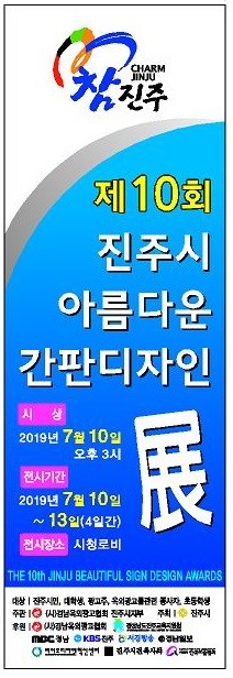 경남옥외광고협회 진주시지부는 오는 10일부터 13일까지 4일간진주시청 1층 로비에서“제10회 진주시 아름다운 간판 디자인전”을 개최한다.