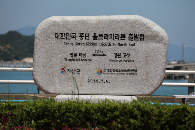 표지석은 해남군과 대한울트라마라톤 연맹에서 한반도의 시작 땅끝해남에서 시작되는 국토의 종단 마라톤 출발점을 알리기 위해 세운 것으로, 건립을 기념하는 대한민국 종단 622km 울트라마라톤대회도 7일부터 시작됐다.