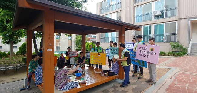 아산시보건소는 지난 8일 아산시 읍내동 주공아파트에서 관리사무소·복지관·노인정과 함께 아파트 주민들을 대상으로 자살예방 연합 캠페인을 진행했다.