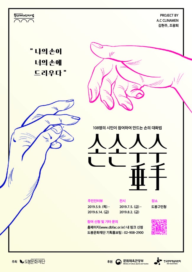 전시는 지역예술가 A.C클레나멘이 108명의 주민들에게 손과 관련한 인터뷰를 진행하고, 각각의 이야기 안에 담긴 경험과 사건들을 기록한 전시이다. 지난 4월부터 2개월여 동안 초등학생부터 90세 어르신을 만나며 기록한 사진과 영상 작업들이 전시되며, 전시에 다 담지 못한 인터뷰 내용은 이후 책자로 제작해 성별·나이·직종 등 다양한 계층을 이해할 수 있도록 한다는 계획이다.