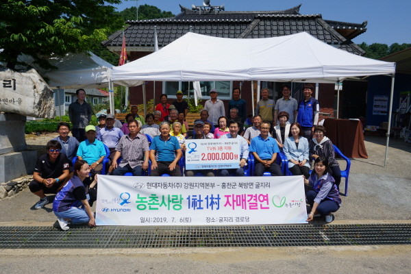 지난 6일 토요일 북방면 굴지리 마을회관에서 굴지리 마을-현대자동차 강원지역본부 간 1사1촌 결연식이 열렸다.