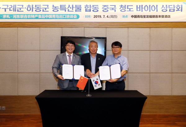 광양시·구례군 등 섬진강 이웃사촌과 중국시장 공동 마케팅에 나선 하동군이 현지에서 하동 농·특산물 1020만달러어치의 수출 협·계약을 체결하는 성과를 올렸다.