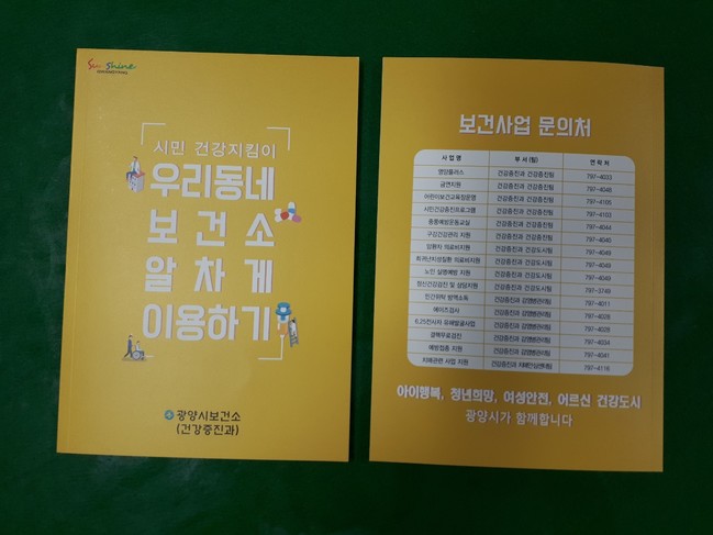 사업홍보 공통제작으로는 시민들이 혜택을 한눈에 볼 수 있는 보건사업을 총정리해 시민건강지킴이 ‘우리동네 보건소 알차게 이용하기’ 홍보 안내책자를 제작했다.