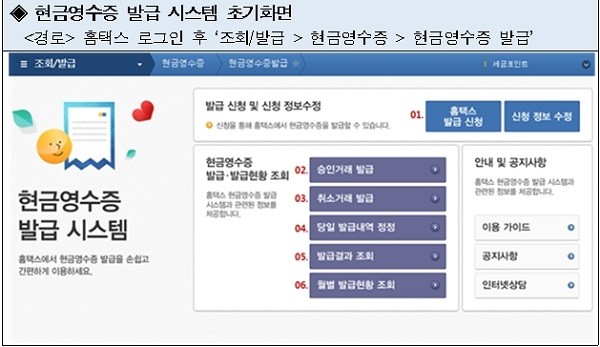 홈택스 현금영수증 발급시스템