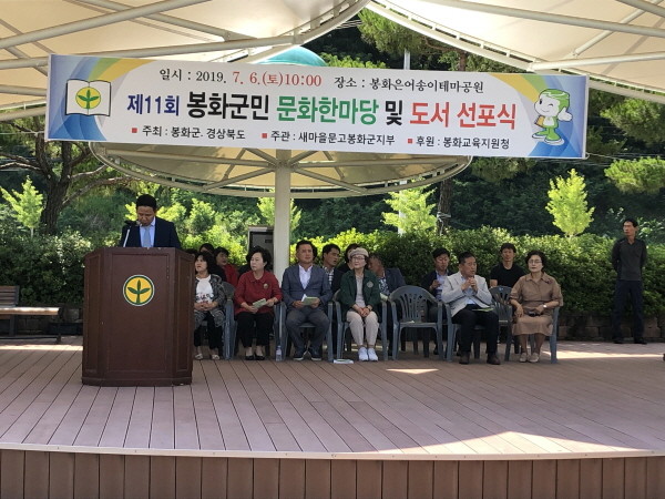 새마을문고 봉화군지부에서는 지난 6일 오전 10시부터 봉화은어송이테마공원에서 관내 초·중학생, 일반인 등 250명이 참석한 가운데 “제11회 봉화군민 문화한마당 및 도서선포식”행사를 개최했다.
