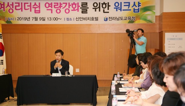 전라남도교육청은 9일 오후 신안비치호텔에서 장석웅 교육감과 김평훈 행정국장 등 본청 간부와 사무관 이상 여성공무원 30명이 참석한 가운데‘2019 여성리더십 역량강화 워크숍’을 가졌다.