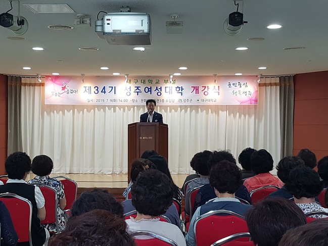 성주군은 7월 9일 오후 2시 문화예술회관 소강당에서 이병환 성주군수를 비롯한 내빈들과 여성대학 수강생 등 110여명이 참석한 가운데 ‘제34기 성주여성대학’개강식을 개최했다.