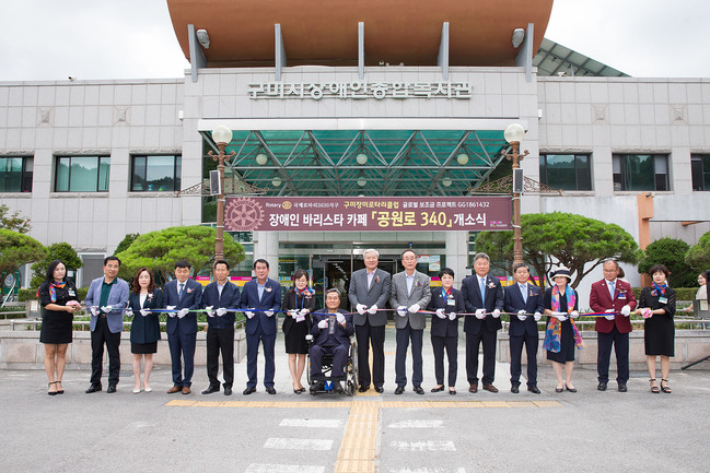 구미시에서는 9일 오전 11시 구미시장애인종합복지관에서 장세용 구미시장, 지역 도·시의원 및 각 장애인단체장, 국제로타리 3630지구 클럽회원 등 100여명이 참석한 가운데 장애인 바리스타 카페 ‘공원로 340’개소식을 가졌다.