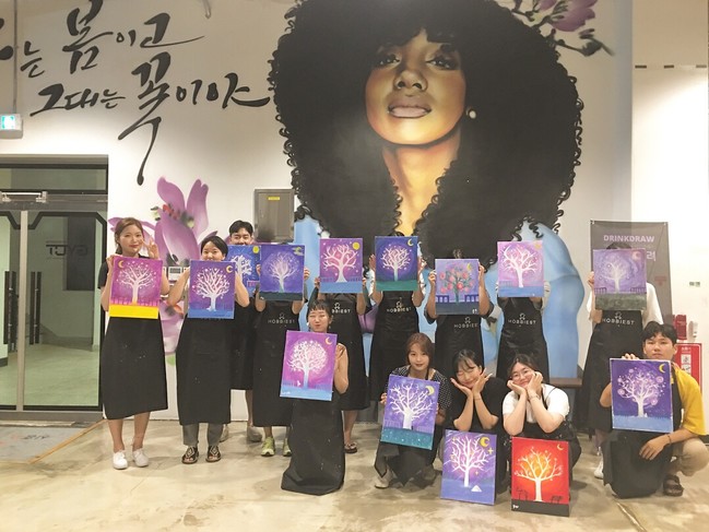 창작UP 캔버스 드로잉은 단 2시간 만에 붓과 물감을 사용해 캔버스에 자신만의 그림을 완성할 수 있는 과정으로, 회 차마다 다른 주제의 그림을 그린다.