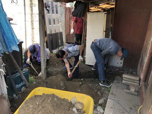 이날 이동면지역사회보장협의체는 북부무한돌봄센터, 이동면사무소, 이동파출소와 협력해 수도 시설이 없어 고령임에도 밖에서 물을 사용해야 하는 취약계층 가구를 위해 보일러실과 화장실의 문을 수리했다. 또한 1m 정도 땅을 파고 벽을 뚫어 싱크대에 배관을 연결해 실내에서 물이 나오도록 했다. 마당의 요철부분에 대해서는 평탄작업과 콘크리트 포장 작업을 진행해 생활하는 데 불편하지 않도록 취약한 구조를 개선했다.