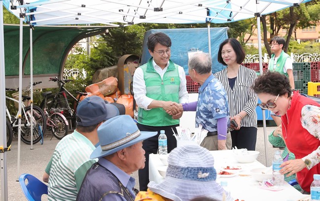 이재현 서구청장은 각 동을 방문해 어르신들의 무병장수를 기원하며 음식을 나르고 설거지도 도왔다.